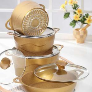 امروزه انواع سرویس های قابلمه در طرح ها و رنگ های مختلف در بازار موجود میباشد. یکی از انواع این محصولات که بسیار پر فروش میباشد قابلمه چدن طلایی است. در بیشتر
